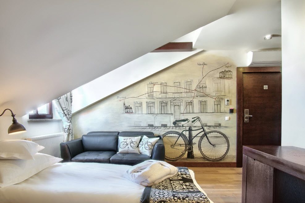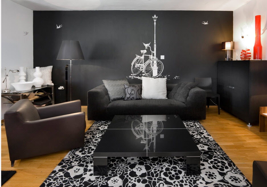 Рисунок должен соответствовать стилистическому решению и цветовой палитре комнаты. Особое внимание уделяют его расположению. От того, какая стена будет акцентной, зависит восприятие всего интерьера. В лофте применяют «дымчатые» картины и граффити на кирпичных стенах. Выполняется роспись в технике аэрографии. Романтичный стиль прованс обожает растительные мотивы. Букетики полевых цветов, пионы, розы, лилии станут лучшим дополнением для интерьера французской глубинки. В модерне часто повторяют шедевры живописи, которые в свое время украшали дамские будуары и роскошные салоны в характерной для стиля манере. Неподражаемый ар деко отдает предпочтение тонкой вязи и витиеватым орнаментам. Японский стиль и близкий ему по духу минимализм допускают тематическую для их родной страны роспись: орхидеи, пагоды, ветки сакуры. В этническом направлении практически нет ограничений. Если интерьер имитирует бунгало в тропиках, то изображения моря и пальм будут весьма кстати, а вот для африканских мотивов в росписи используют деревья с характерными кронами, слонов, «высушенный» ландшафт. Помимо стиля, учитывать стоит и функциональное назначение помещения.