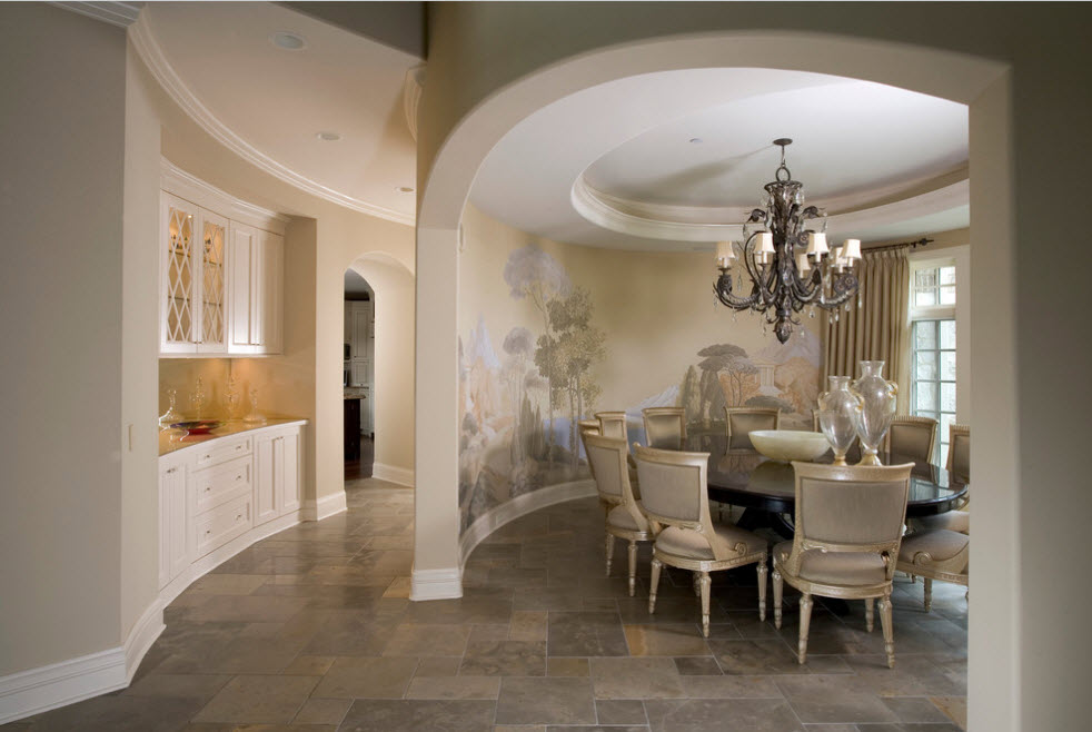 Классическое направление. Классика в интерьер никогда не выйдет из моды. Неспроста это направление в оформлении пространств считается традиционным – гармония форм и линий, цветовых сочетаний и материалов. В настенной росписи это чаще всего отражается в изображении идеального пейзажа – он столь же реалистичен, сколь и является отражением мечты о «золотом веке». Выбирая классический стиль для оформления стен, вы оставляете позади банальность и однообразие. Это удивительно, но в наши дни классика в росписи стен выглядит актуальнее, чем хай-тек, минимализм или лофт. Что характерно, для исполнения росписи в классическом стиле можно использовать самые современные материалы и приемы.