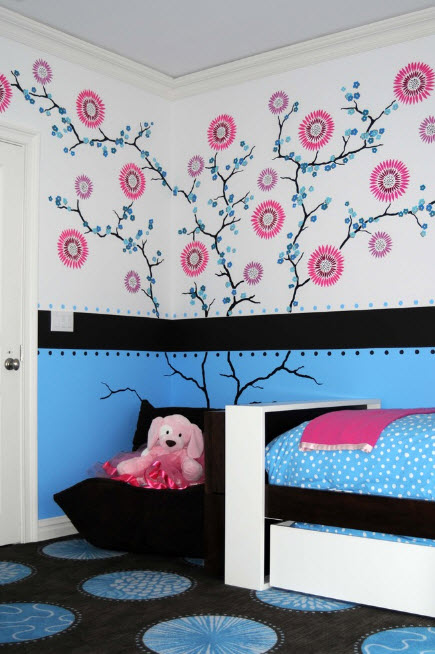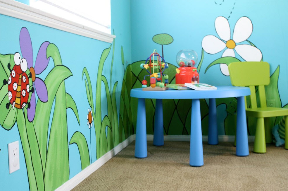 В настоящее время, бесспорным лидером по созданию настенной росписи является интерьер детской комнаты. И это неудивительно – именно для ребенка нам хочется создать удивительный мир, в котором ему будет интересно не только спать, играть и проводить время, но и развиваться, получать новые знания и навыки. А всем известно, что любые знания воспринимаются детьми намного легче и проще, если подаются в игровой форме. С помощью настенной росписи можно создать любой из вариантов сказочных миров. Безусловно, существуют фотообои и интерьерные наклейки, которые обойдутся в разы дешевле, но, во-первых, не всегда удается найти декоративный материал, подходящий по тематике, интересной ребенку, а во-вторых – ручная роспись стены всегда будет стоять на первом месте по эксклюзивности, и художественности.