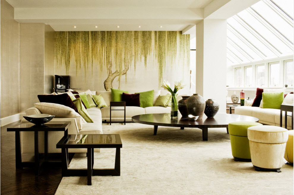 Роспись стен в гостиной позволит создать не только изюминку интерьера, повысить статус эксклюзивности помещения, но и создать определенное акцентирование. При этом, данный дизайнерский прием актуален как для небольших помещений, так и просторных гостиных, в которых соединены несколько функциональных сегментов. Но габариты пространства, безусловно, необходимо учитывать пи выборе изображения для создания художественной росписи.