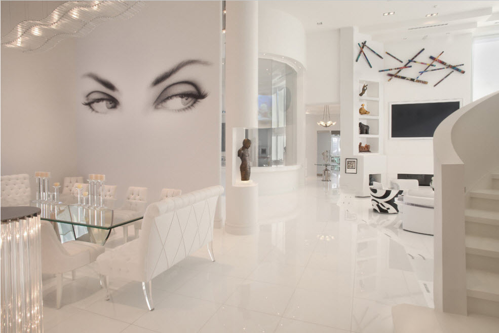 С помощью объемной роспись можно визуально стереть границы помещения, сделать потолок «выше», а комнату «шире». Безусловно, на конструктивные особенности помещения роспись не влияет, но зрительно создается эффект некоторого искривления объемов пространства. Дизайнерам нравится изображать лестницы, уходящие вдаль и будто бы не имеющие конца или распахнутые окна, за которыми открывается красивый пейзаж.