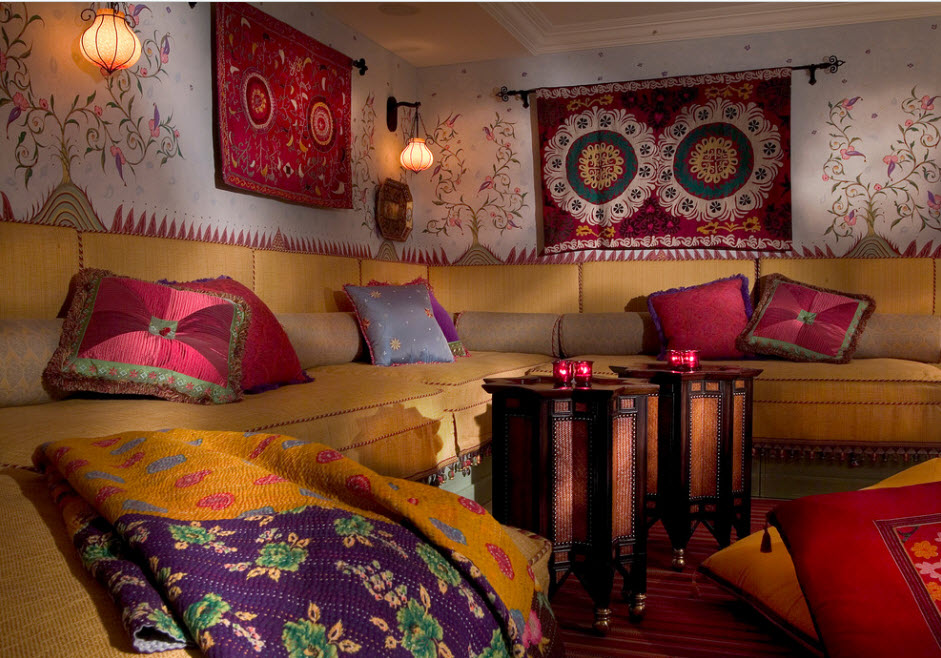 Высокая цена росписи стен в интерьере является главным недостатком данного стиля.