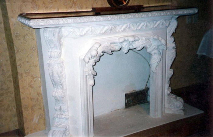 Красивый камин из гипсокартона с необычной отделкой гипсом
