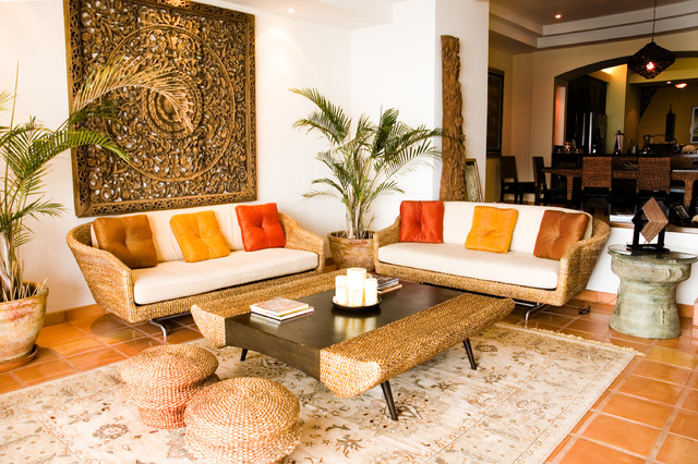 Мебель делают собственноручно, используя такую древесину, как тик. Все предметы мебели достаточно низкие. Что же касается кроватей, диванов, то они обязательно должны быть мягкие и комфортные, чтобы спать на них было очень приятно.