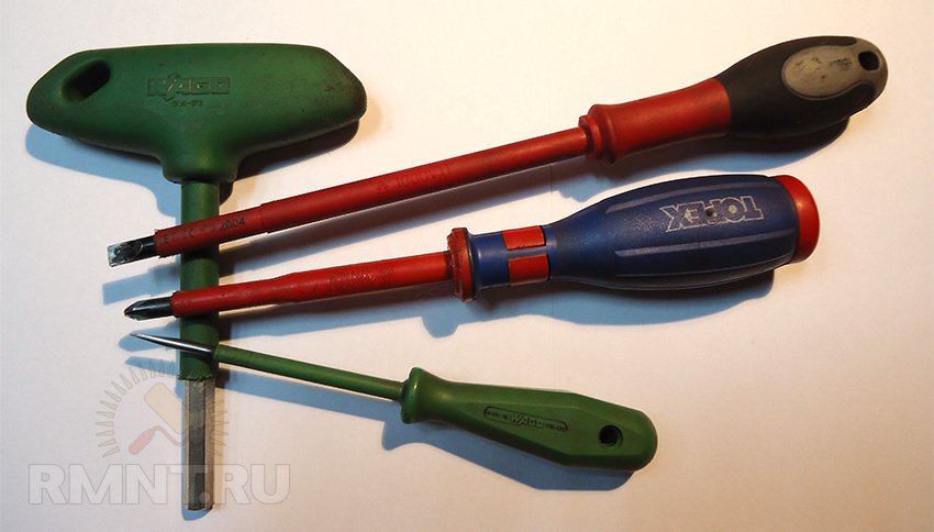 Обязательно наличие крестообразной и плоской отвертки. Лучшим вариантом является наличие нескольких отверток с разными размерами.