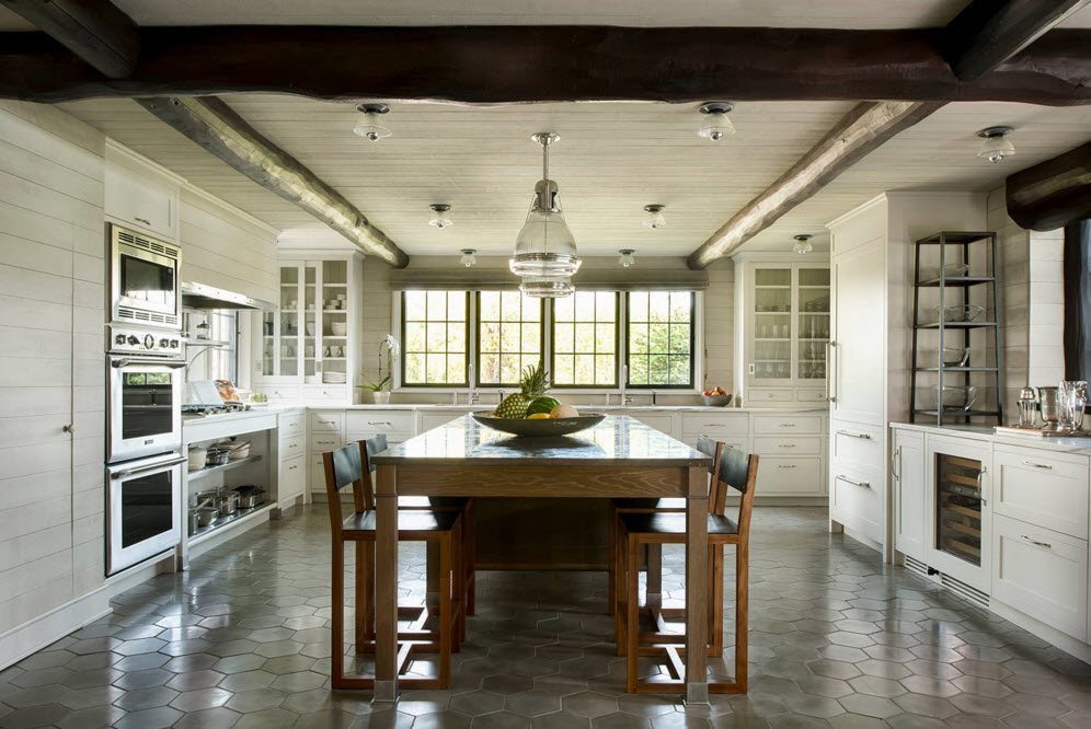 Потолочные балки на кухне выбирают любители скандинавского стиля, прованса или кантри. Такое решение напоминает загородный дом с его уютом, что особенно актуально на кухне.