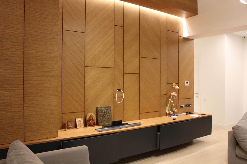 Одной из актуальных тенденций является использование шпонированных панелей в минималистичном дизайне: