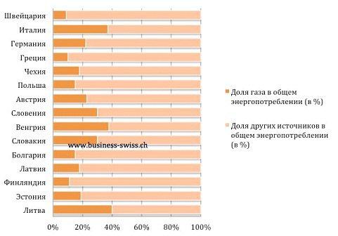 Чтобы оценить всю картину, необходимо знать, какую роль играет газ в совокупном энергопотреблении. Иными словами, зависимость Европы от России вычисляется путём умножения общей доли поставок газа из РФ в Европу на долю газа в совокупном энергопотреблении.