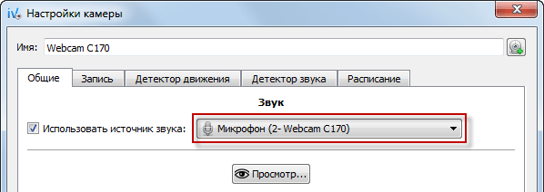 На вкладке “Общие” выбираем источник звука, чтобы можно было не только видеть изображение, но и слышать голос: