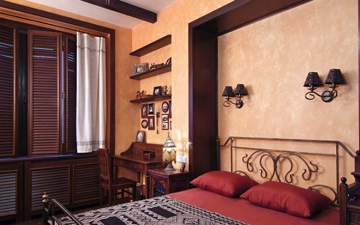 По желанию в интерьере спальни можно создать уникальный народный колорит. Например, это могут быть африканские, индийские или арабские мотивы.