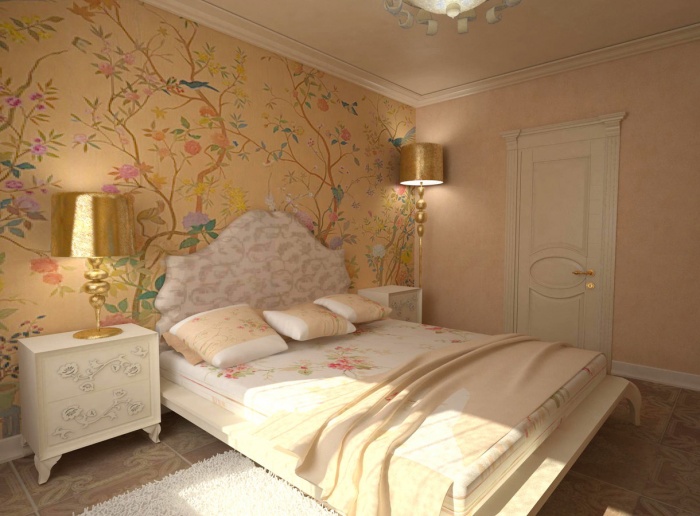 Для чистовой отделки стен в спальной комнате чаще всего используются обои или декоративная штукатурка. При выборе обоев: