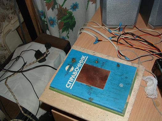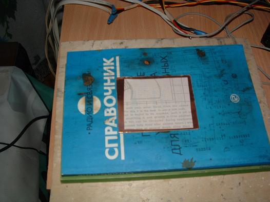 Дальше я укладываю заготовку на специально обученную книгу:), вернее это не книга, а годовая подшивка журналов Радио, в картонном переплете. Делаю я это для того, что бы заготовка не скользила в процессе, и от нагрева не портила то, что под ней находится.