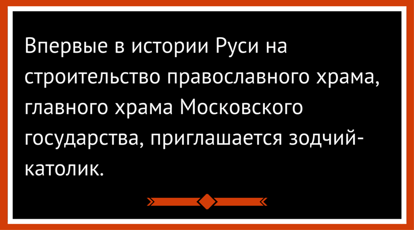 С точки зрения тогдашней традиции – еретик. Почему был приглашен итальянец, который в глаза не видел ни одного православного храма, остается тайной. Может быть, потому, что ни один русский зодчий не захотел иметь дело с этим проектом.