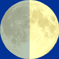 Освещена ровно половина круга Луны с левой стороны (50 ± 1%)