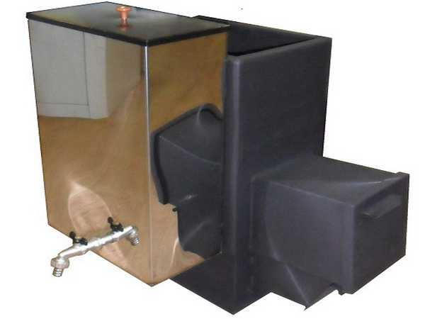Приставной бак для воды – в печь вваривают наклонную, запаянную на конце трубу. Другой конец находится внизу бака. Холодная вода поднимается по наклонной трубе, где нагревается до кипения. Пузырьки горячего воздуха переносят тепло.