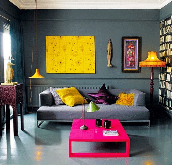 Мебель ярких цветов должна приглушаться более светлыми оттенками стен, но, если хочется насыщенности, следует дополнить интерьер подходящим цветом к оттенку мебели.
