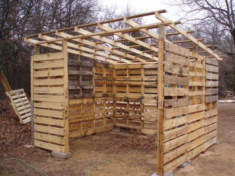 В крайнем случае, можно соорудить дровник «из того, что было». Пересмотреть запасы пиломатериалов, имеющиеся на даче, и, отталкиваясь от этого, возвести своими руками навес. Быстро, дешево, но ненадежно – нет гарантии, что поместится весь запас топлива. Еще один экономичный вариант – дровник из деревянных поддонов.