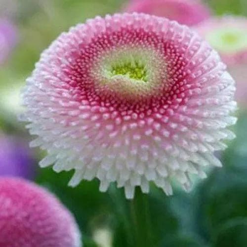 - Roggli Rossa. Этот сорт маргаритки имеет красные, ярко-розовые и белые цветки.