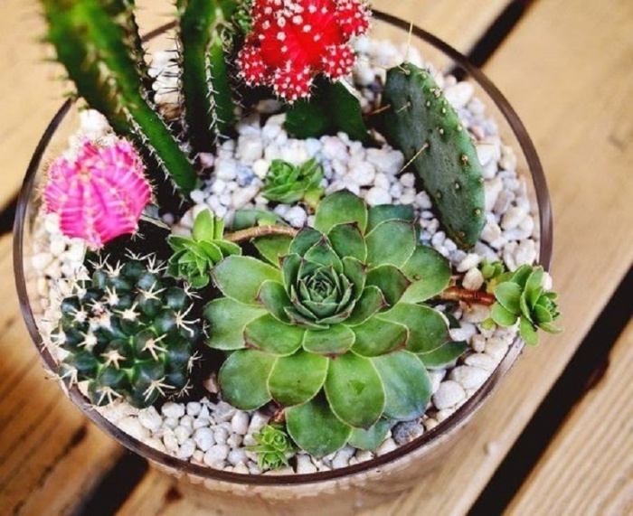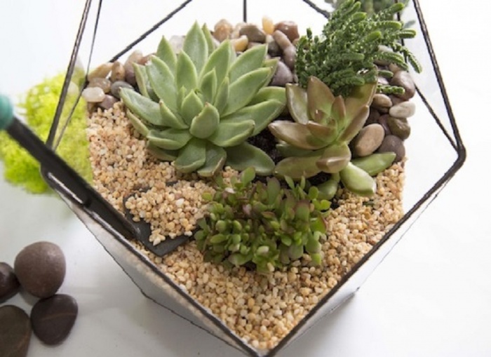• кактусы. Грамотно подобранные элементы декора и соседствующие суккуленты раскрывают, казалось бы, привычные кактусы в совершенно ином свете: как диких обитателей мексиканских пустынь или как ценное украшение любого декоративного флорариума.