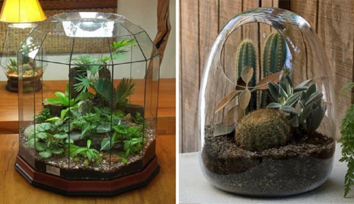 Посмотрим какие виды террариумов для растений различают.