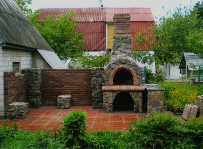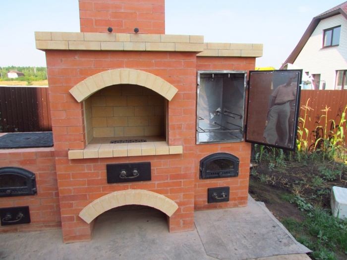 Камин с мангалом и коптилкой выполнен в виде печи