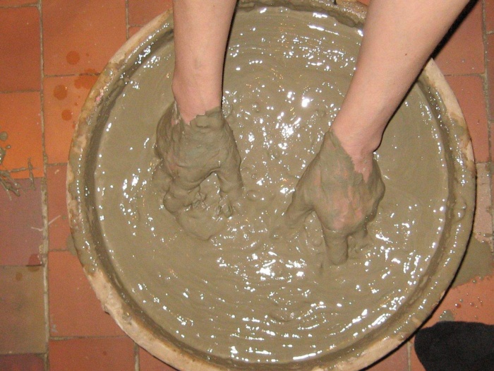 Для приготовления глиняного раствора нужно замочить глину в металлической емкости на 3 дня. После этого, при помощи самодельной трамбовки трамбовать глину постепенно добавляя песок. В растворе не должно быть камней или глиняных грудок. Для того чтобы понять правильная ли консистенция, нужно лопатой немного зачерпнуть раствора. Глиняный раствор должен понемногу сползать с лопаты, а не растекаться по поверхности лопаты. Для того, чтобы придать глиняному раствору прочности, в его состав добавляется поваренная соль.