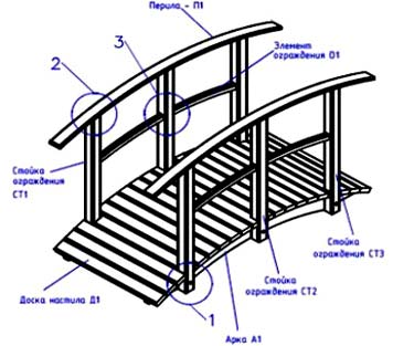 Перепадвысот в арочном мостике не должен превышать 20 о. Вырезанные лагискрепляются между собой ребрами жесткости – чем шире мост, тем меньше просветмежду лагами.