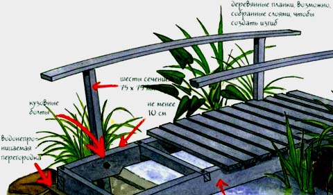 Разнообразие садовых мостиков позволяет выбрать подходящую конструкцию для любого стиля. Первым требованиемдля их возведения является обустройство основы. Если садовый мостик своими руками сооружается наберегу , его береганеобходимо укрепить и дополнительно проложить гидроизоляцию. Для укреплениясклонов используют крупные булыжники, толстые бревна, бетон, щебень. Послесоздания опорной площадки приступают к сооружению моста.