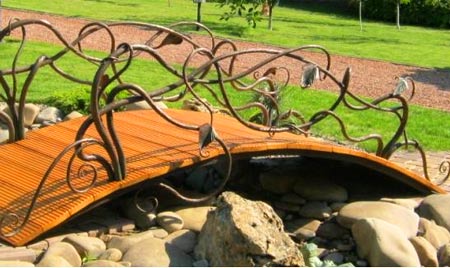 Если ваш , особенно при наличии низменных участков весной заливающиеся водой, наличие кованого мостика является необходимостью. Ещё одна ситуация, при которой мостик является хорошим дополнением — это оформление дороги, ведущей к деревянной беседке. Сделав такое особенное строение возле участка зоны отдыха, хозяину удастся придать своему дачному участку вид завершённости.