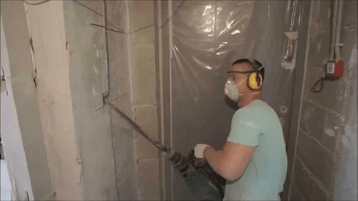 Перед тем как приступить к работе, потребуется выполнить большой объем по уборке остатков бетона, раствора. Основная часть придется на черновую очистку стен, пола, потолка, их штробление, выравнивание и подрезку швов. Такая работа дает большое количество грязи и пыли, поэтому необходимо будет организовать хорошую вентиляцию и влажную уборку внутри новостройки.