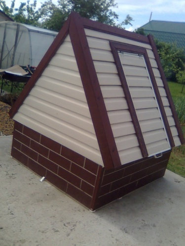 Существует еще более простой вид домика, он предполагает наличие только двух кровельных скатов и делается из досок.