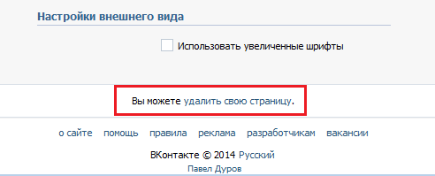 В появившемся окне в самом низу вы найдете заветную ссылку, пройдя по которой вы сможете полностью удалить свою страницу. На нее больше никто не сможет зайти.