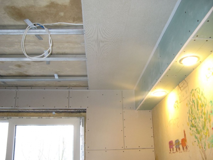 Каркас из металлического профиля необходимо устанавливать на расстоянии не более 4 см от чернового потолка.