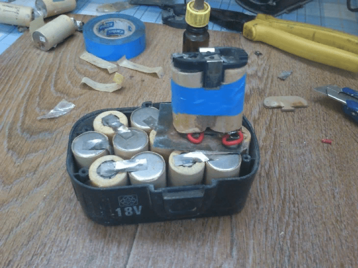 Перед началом манипуляций аккумулятор 12в для шуруповерта ставится на подзарядку; после вскрытия батареи, элементы питания из нее извлекаются; затем проверяется напряжение на каждом элементе. Показания фиксируются; следующий этап в работе: подключение напряжения с целю выявления слабых мест; затем воспроизводится повторное измерение напряжения и намечаются те, которые плохо заряжены: они подлежат замене на новые; приобретаются элементы согласно маркировки. Если принято решение осуществить их замену в полном объеме, то это выйдет несколько дороже, но зато не нужно будет париться в поисках слабого звена: все элементы спаиваются в строгой последовательности плюс к минусу, устанавливаются в батарею и заново запечатываются