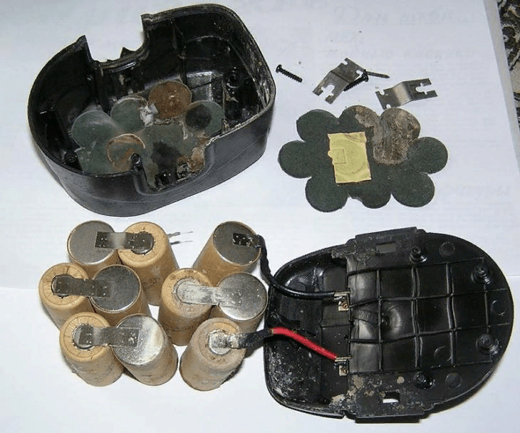 Данный способ ремонта касается элементов литий-ионных аккумуляторов. В течение периода эксплуатации они перегреваются, в результате из некоторых батареек испаряется электролит. Из-за этого внутри батарейки скапливаются газы, вызывая вздутие, сопровождаемое изгибом пластины. После этого приходится восстановливать аккумулятор шуруповерта.