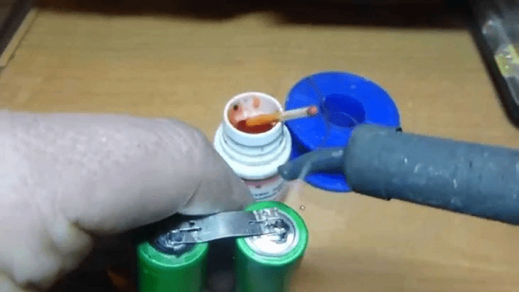 Новые детали устанавливаются на свои места и соединяются имеющимися пластинами. Для соединения используется пайка или точечная сварка. При этом нужно следить, чтобы элемент питания не перегревался. Поэтому работа должна быть выполнена аккуратно и быстро с использованием флюса или канифоли.
