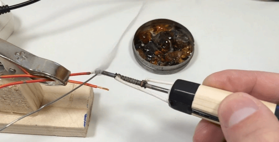 - Во втором случае плюсовой контакт отсоединяется с помощью кусачек, после чего он слегка отгибается, но не отрезается полностью. После этого под изогнутую пластину вставляется шило и постепенно проталкивается внутрь. То есть, пластина разъединяется с краем батарейки и газ выходит наружу. После этого она вставляется на свое место, а отверстие заделывается наиболее удобным способом. Остается лишь припаять контакт, отсоединенный в самом начале.