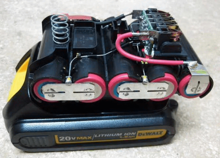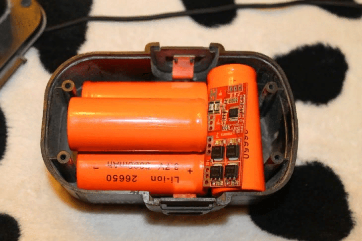 - Уберите крышку и выньте аккумуляторные элементы в сборке.
