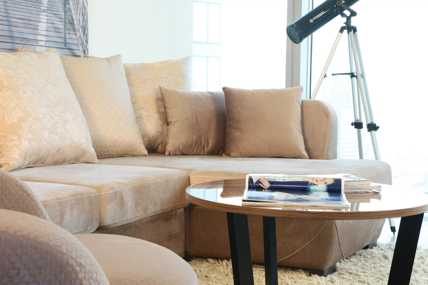 Элегантный и уютный светлый диван в будет идеальной основой для цветовых акцентов — декоративных подушек и пледов.