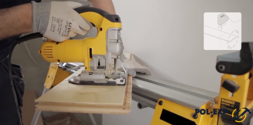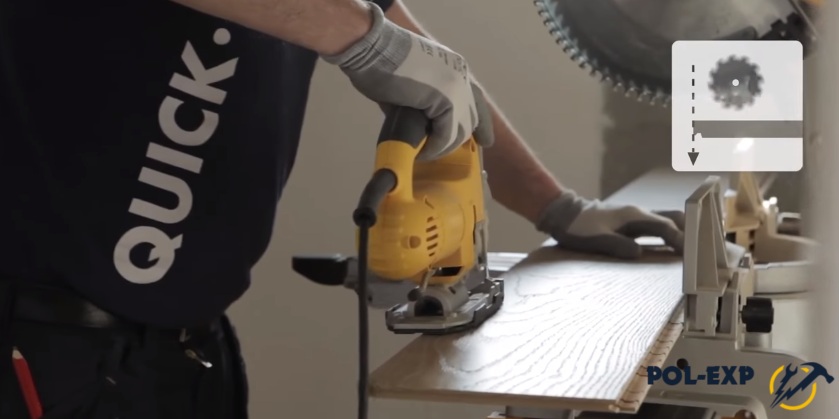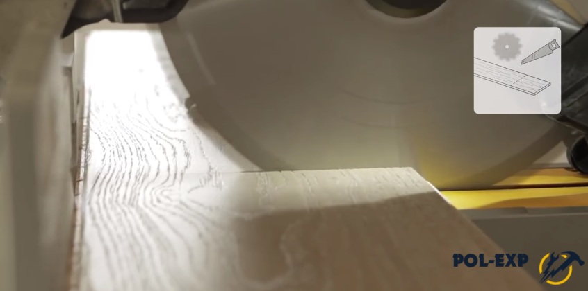 Шаг 7. С первой паркетной доски нужно убрать шип соединения. Делать это следует при помощи электрической пилы или лобзика.