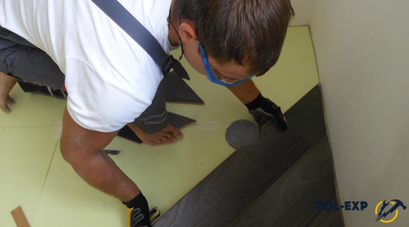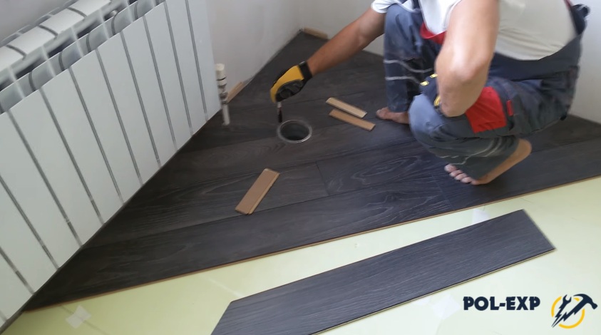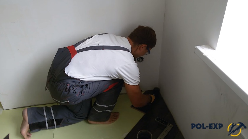 Практический совет. Не стоит добиваться идеально ровного среза, щель между покрытием и стеной в дальнейшем закроется плинтусом.