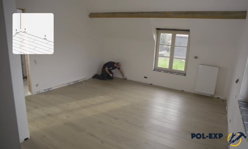 Работы начинаются в углу помещения, доски располагаются под углом 45° к стенам.