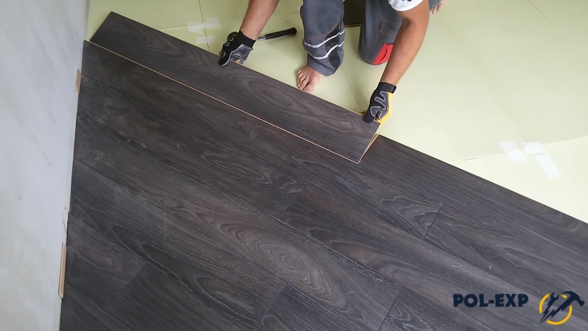 Далее настил пола нужно продолжать по описанной схеме. Тщательно подбивайте доски, небольшие зазоры через несколько рядов станут заметными. Для устранения проблемы придется демонтировать уже установленные ламели. Помните, что торцевые замки должны располагаться вразбежку.