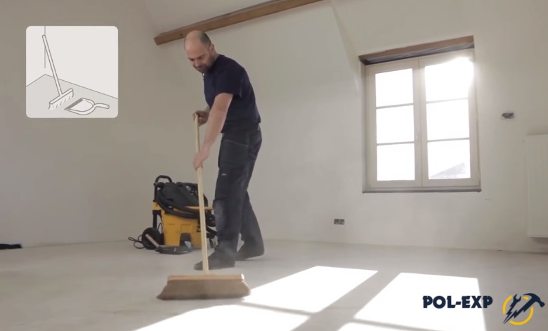 Шаг 3. После застывания смеси тщательно уберите поверхность от пыли и строительного мусора, просушите помещение.