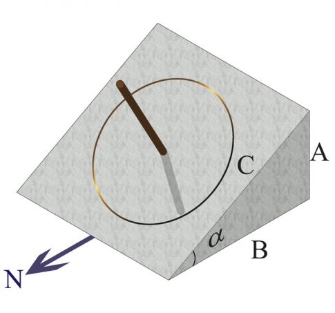 Наклон шкалы у этих часов требуется для того, чтобы даже стоящее в полном зените Солнце отбрасывало тень.