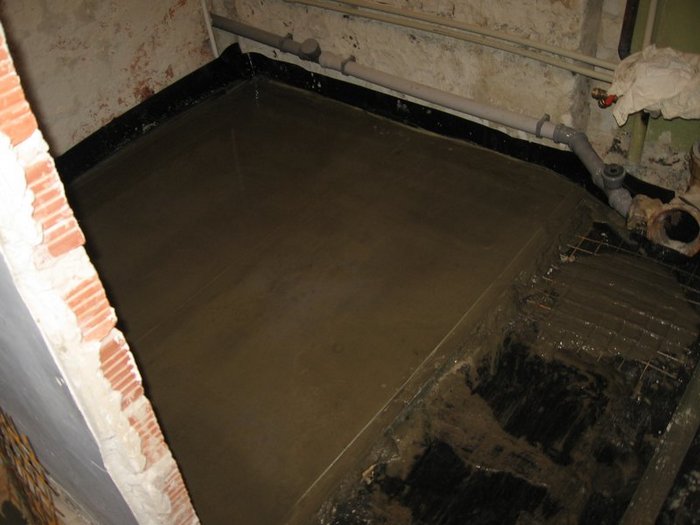 Разделительная стяжка обычно производится в ванных комнатах, так как она предполагает наличие дополнительного гидроизолирующего слоя.