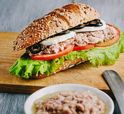 Ингредиенты:— горбуша (лосось) — 1 шт.,- плавленый сырок — 1 шт.,- куриное яйцо — 1 шт.,- бородинский хлеб,- крабовые палочки — 1 упаковка,- укроп по вкусу,- огурец свежий — 1 шт.,- маслины — 1 горсть.