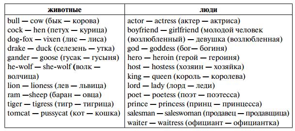 То же самое касается и животных. Для некоторых видов существуют разные названия для особей мужского и женского пола: