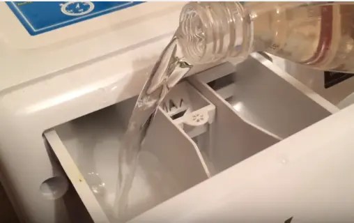 - Залейте 9%-ный столовый уксус в лоток машины, который предназначен для засыпки стирального порошка.