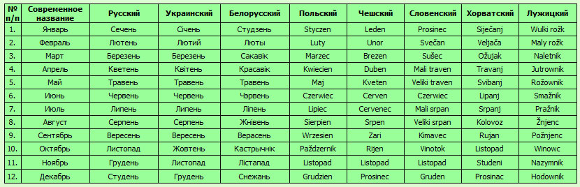 Месяцы у древних славян
